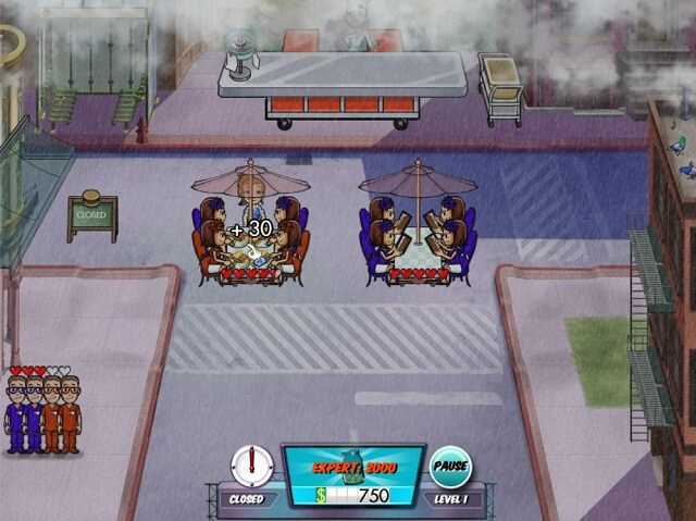 Embark on this culinary adventure across five distinctive venues, each housing ten story mode levels. A bonus level awaits those who conquer a venue, challenging players with lofty goals and extended shift times. Guard your tables against the forces of nature, investing in strategic upgrades to combat winds, earthquakes, rain, and electrical mishaps.