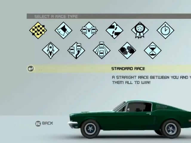The main Career mode is included in the DS version, which is divided into 14 race tournaments, each with a different vehicle class and a variety of race types, including elimination races. Each tournament can have up to six races. Each racer receives a certain number of points based on their finish position at the end of each race. The winner of the tournament is the racer with the most points at the end of the tournament. Ford Racing 3 also includes 22 different challenges organized by vehicle class. Each vehicle faces a unique challenge. Ford Racing 3 begins with three vehicles and a few race tracks, with additional vehicles and tracks unlocked by completing challenges and competitions. The DS version also includes a Ford Collection mode, which consists of ten different types of races that the player can win to unlock new content.
