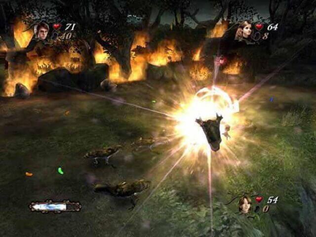 Rather than free-roaming around Hogwarts Castle as in previous games, Harry Potter and the Goblet of Fire is divided into specific levels. Levels are drawn from the novel on which Harry Potter and the Goblet of Fire is based, with levels ranging from the Quidditch World Cup to the Prefect’s bathroom and the Herbology greenhouses; all of which can be accessed via the in-game “pensieve.” Outside of combat, Harry Potter and the Goblet of Fire includes modes such as broomstick flying and underwater swimming.
