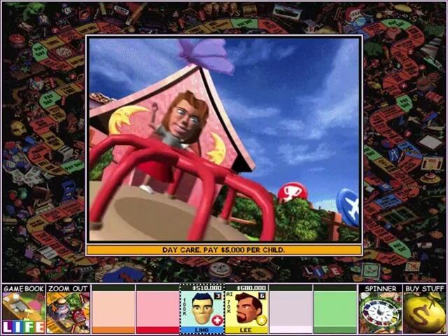 “When you play The Game of LIFE, you can learn about life!” Many (American) readers will recognize this catchy television jingle from about twenty years ago, which promoted the old board game of the same name. While the only thing you might learn was a bizarre caricature of life based on 1950s stereotypes, The Game of LIFE was certainly one of the children’s/family games that most people of my generation will remember having played on at least a few occasions, alongside games like Sorry! and Clue. Of course, it’s 1998, so it seems almost natural that a computer version would be released. Hasbro Interactive is releasing a number of their board game titles on the computer (including the aforementioned Sorry! and Axis & Allies), and as a result, we can now play The Game of LIFE without having to clean up after ourselves.