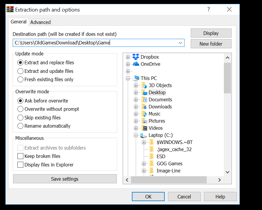 - If you want to extract the file to the same location you have the compressed file, simply click on “OK” and it should begin extracting. Otherwise you can choose a custom directory to extract your files to by clicking on “…”.